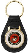 USMC Crest on Leather Key Fob